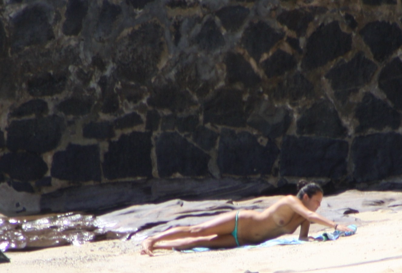 2 Beach Bunnies 1 Creeper AF Pix atomicfrog suntanning topless voyeur spy bikinis