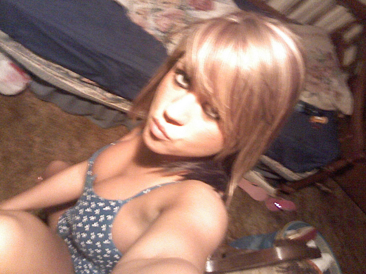 Dan Dan Brian atomicfrog mirror selfshot blonde cleavage tattoo tanned cute downblouse amateur busty tanktop jeans legs handbra smile lips tease young sweat trackpants cheerleader armpits