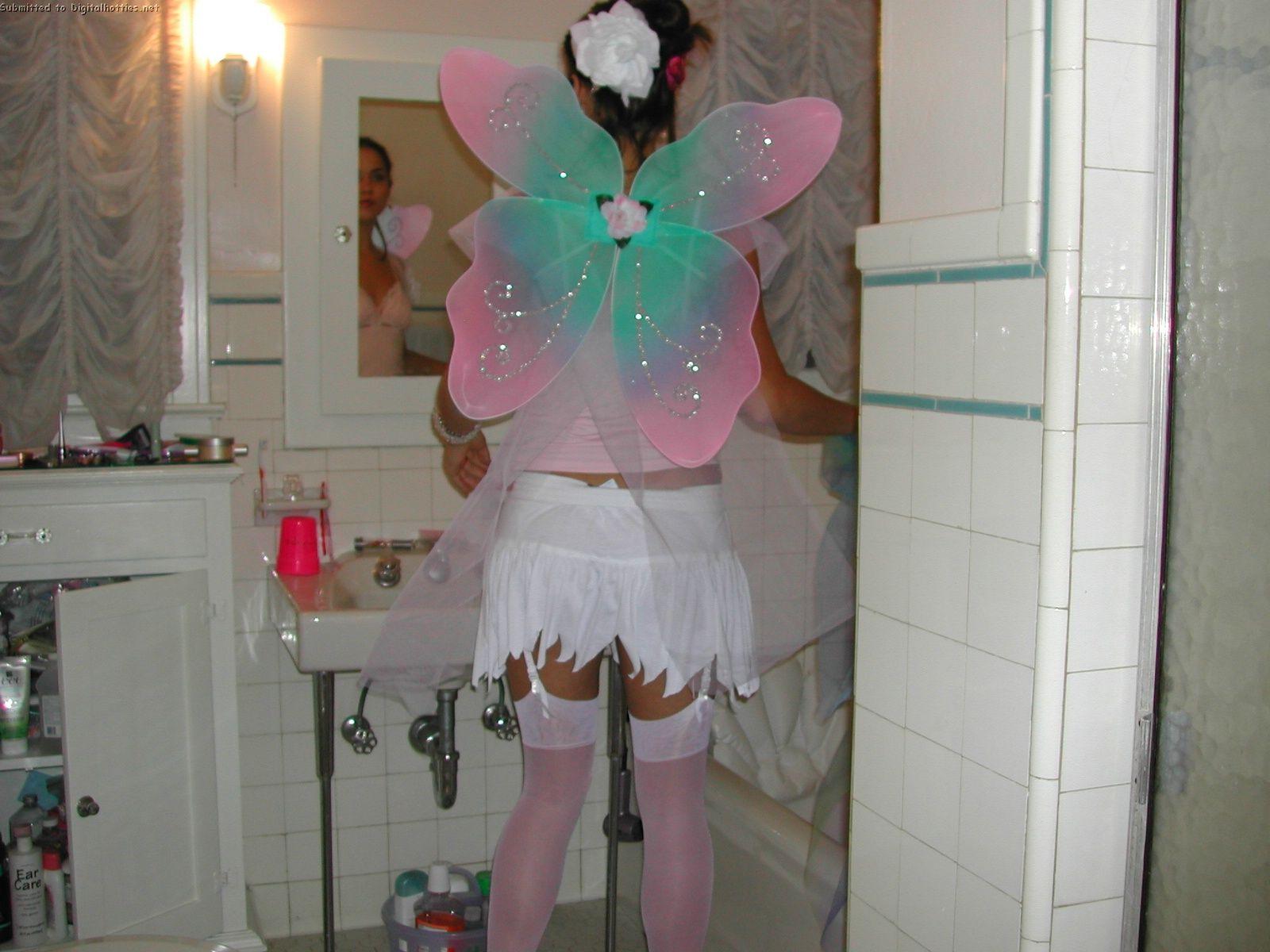 Fairy Chick Red Dog atomicfrog thong panties booty ass butt brunette topless tits nips nipples boobs legs soles heels tanlines bra skirt pantyhose stockings