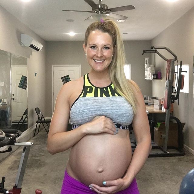 preggo pregnant fit nonude nonnude sportsbra toned tight active athletic gym belly tummy selfie selfshot mirror blonde