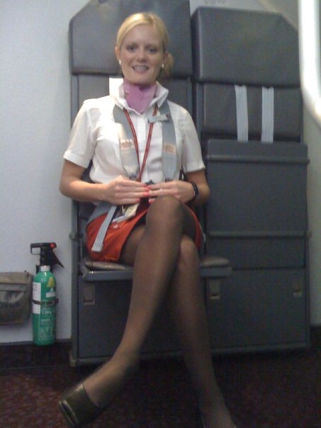 Flight Attendants Misbehaving AF Pix atomicfrog pantyhose skirt skirts heels legs nonude