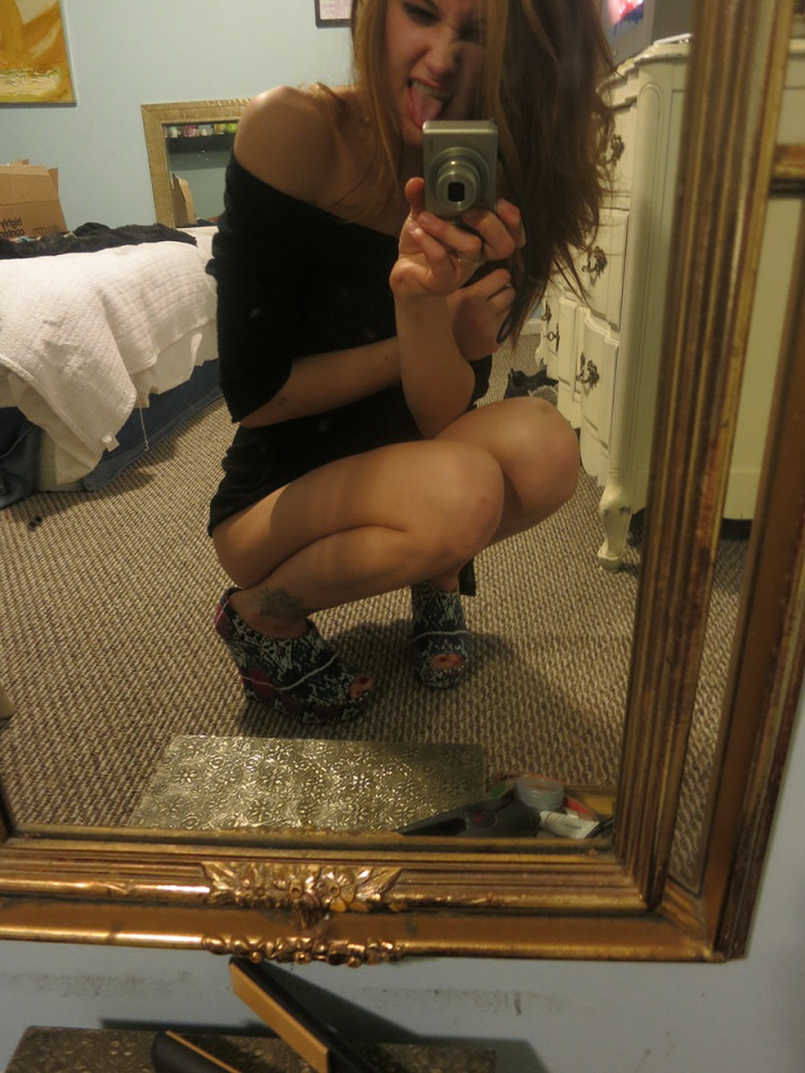Funn Little Mee Amateur Obsession atomicfrog mirror selfshot self skinny thin slender shorts jeans booty ass thong panties butt cute tiny tinytits bra legs heels slit pussy shaven shaved