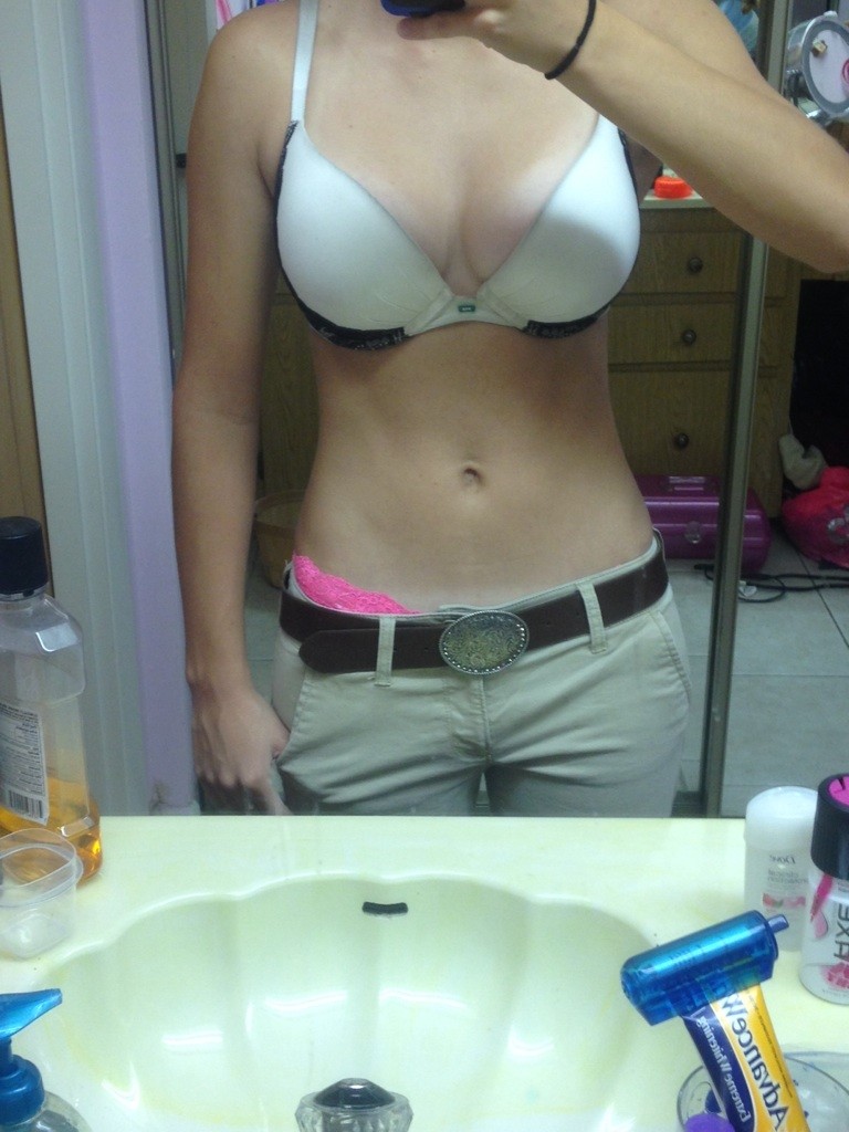 selfie mirror selfshot topless tits boobs amateur abs stomach belly teen panties