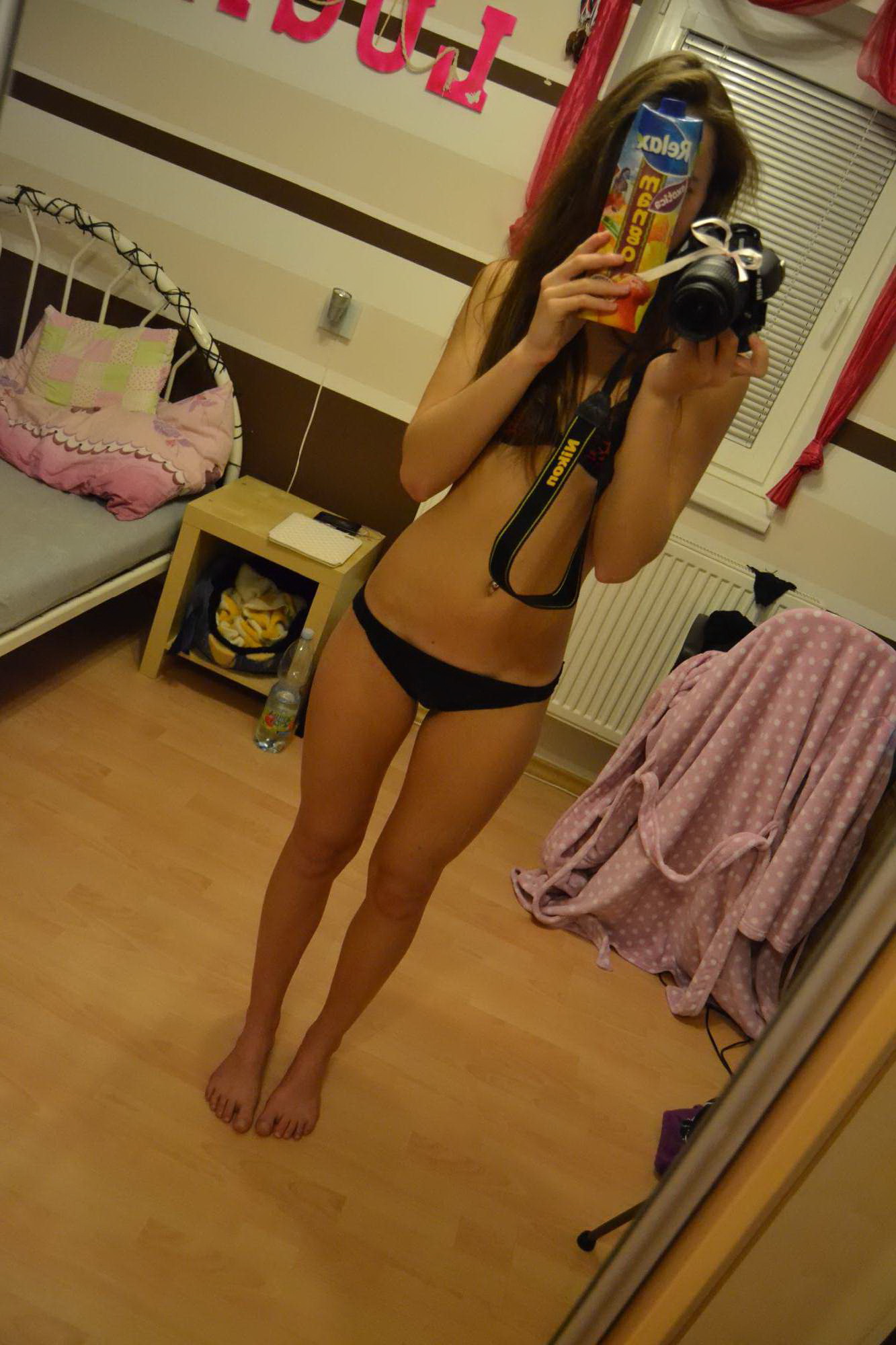 selfie selfshot mirror panties thong booty ass brunette cute sexy legs bra