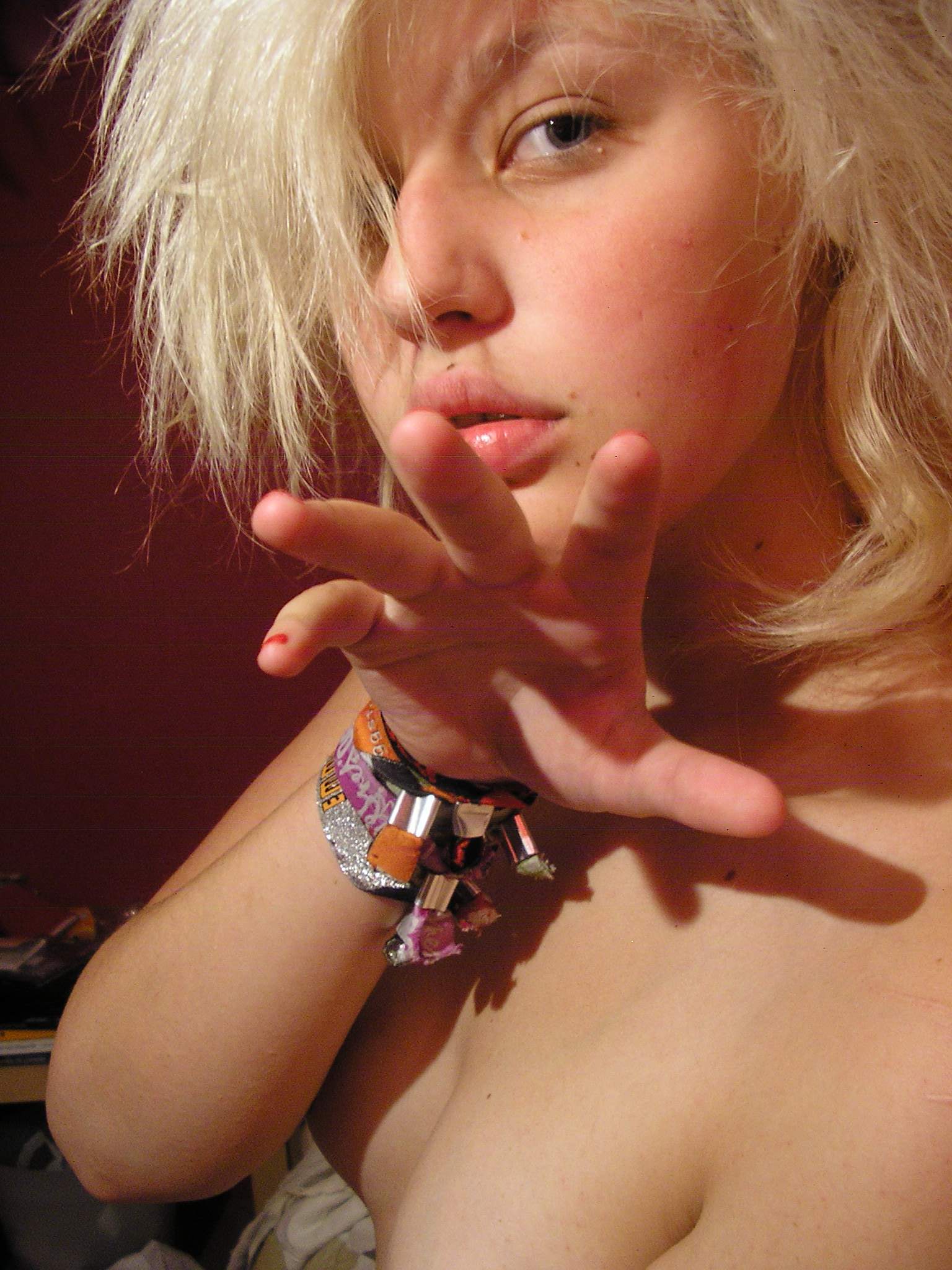 Model Chick willacat atomicfrog lips blonde topless tits boobs eyes handbra cover punk goth rock