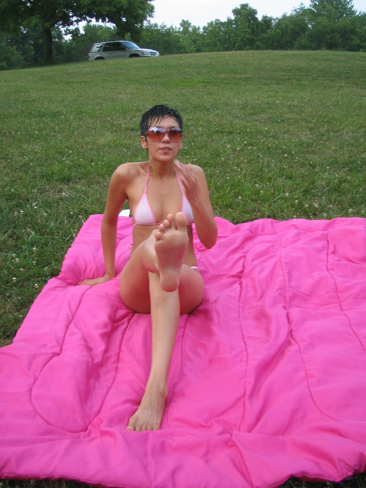 Short Haired Asian Freak Latino M4N atomicfrog skinny thong panties booty ass behind bikini feet soles topless tits sexy legs heels