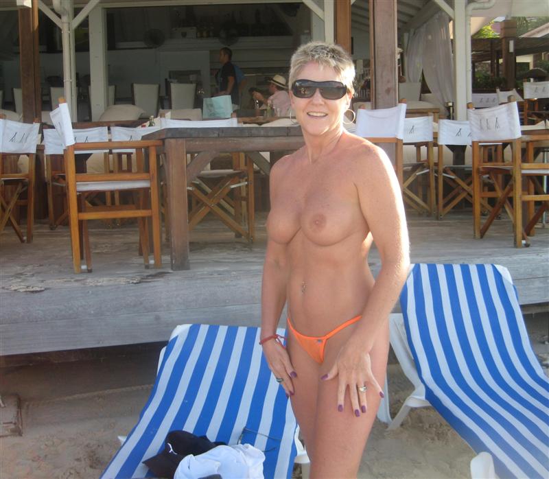 Unhibited MILF Cheri Stanpuppy atomicfrog beach topless fake implants boobs bikini mom mature naked nudity
