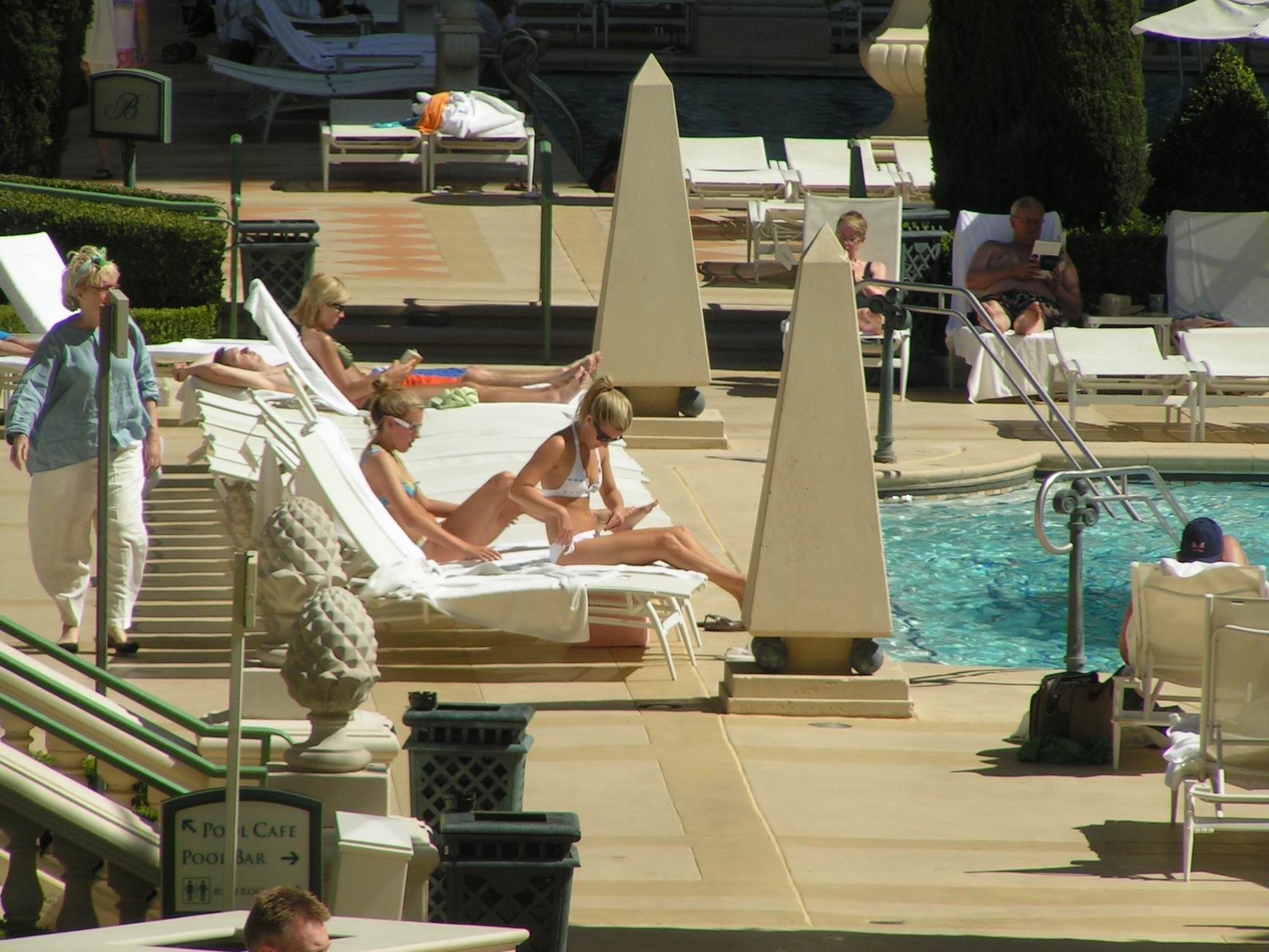 Vegas Sisters Pool Guy atomicfrog bikini voyeur candid nonude booty ass butts suntanning spy legs flipflops soles toes