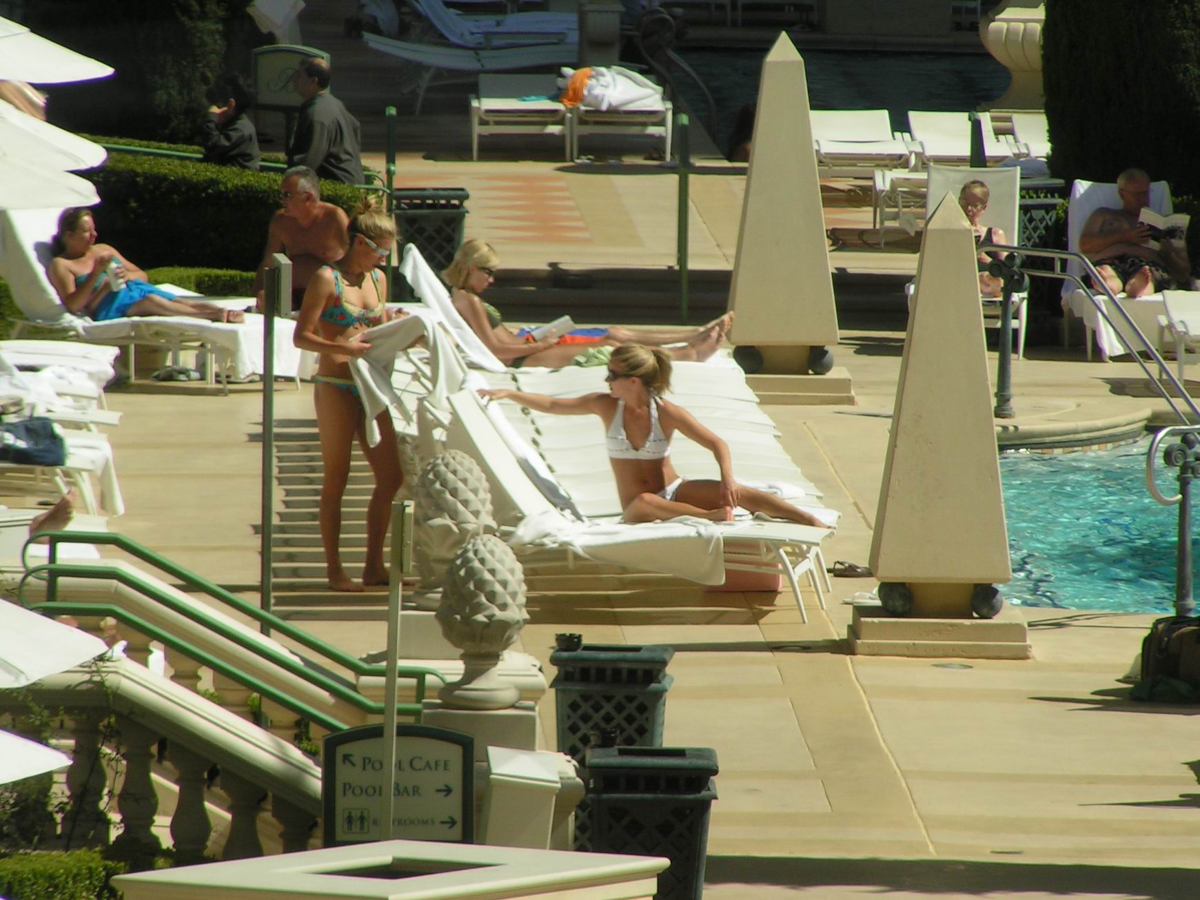 Vegas Sisters Pool Guy atomicfrog bikini voyeur candid nonude booty ass butts suntanning spy legs flipflops soles toes