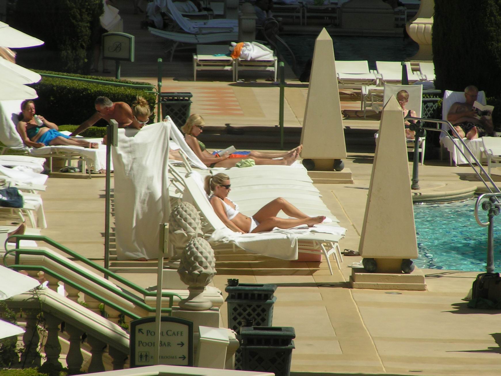 Vegas Sisters Pool Guy atomicfrog bikini voyeur candid nonude booty ass butts suntanning spy legs flipflops soles toes