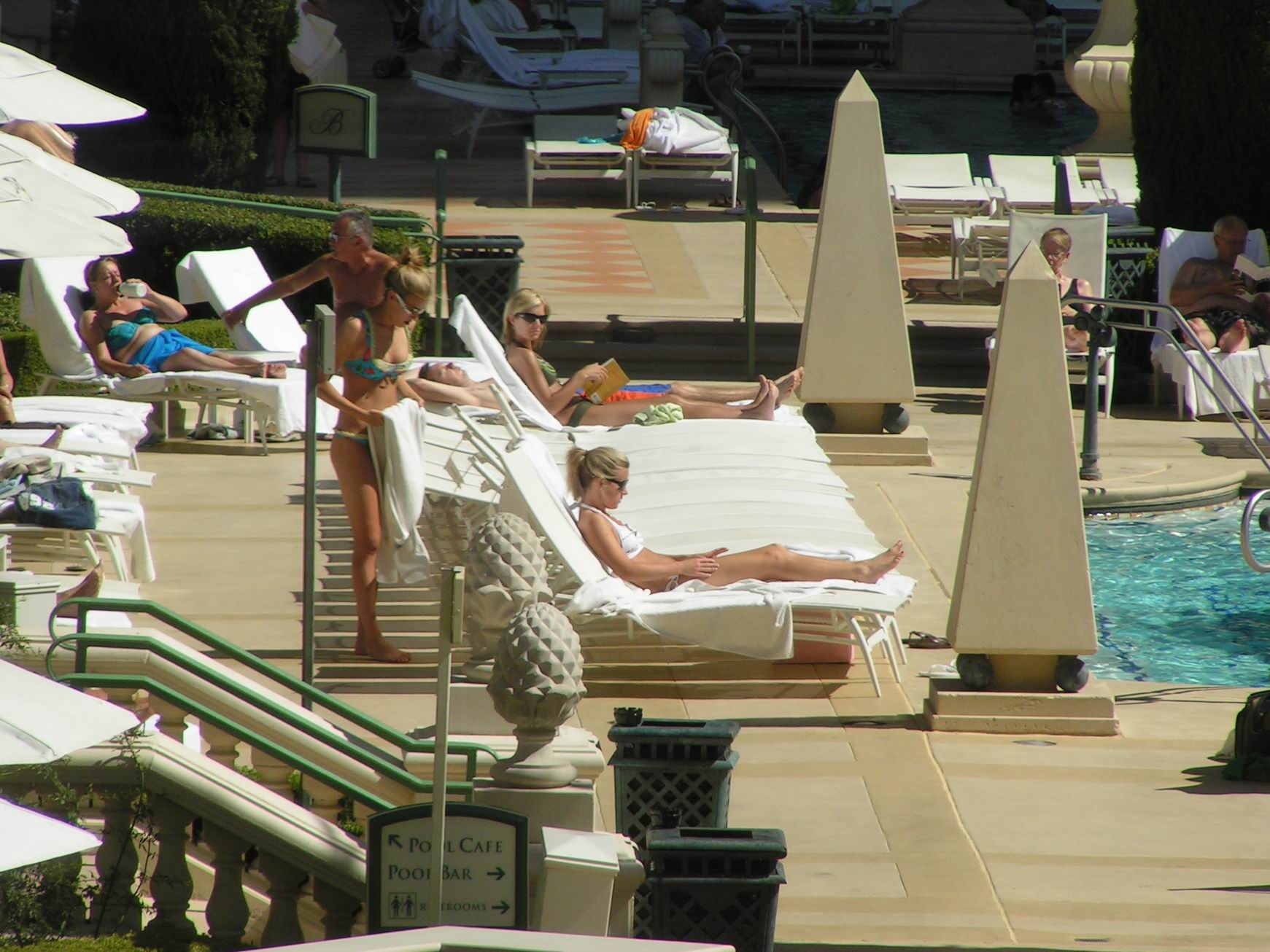 Vegas Sisters Pool Guy atomicfrog bikini voyeur candid nonude booty ass butts suntanning spy legs flipflops soles toes