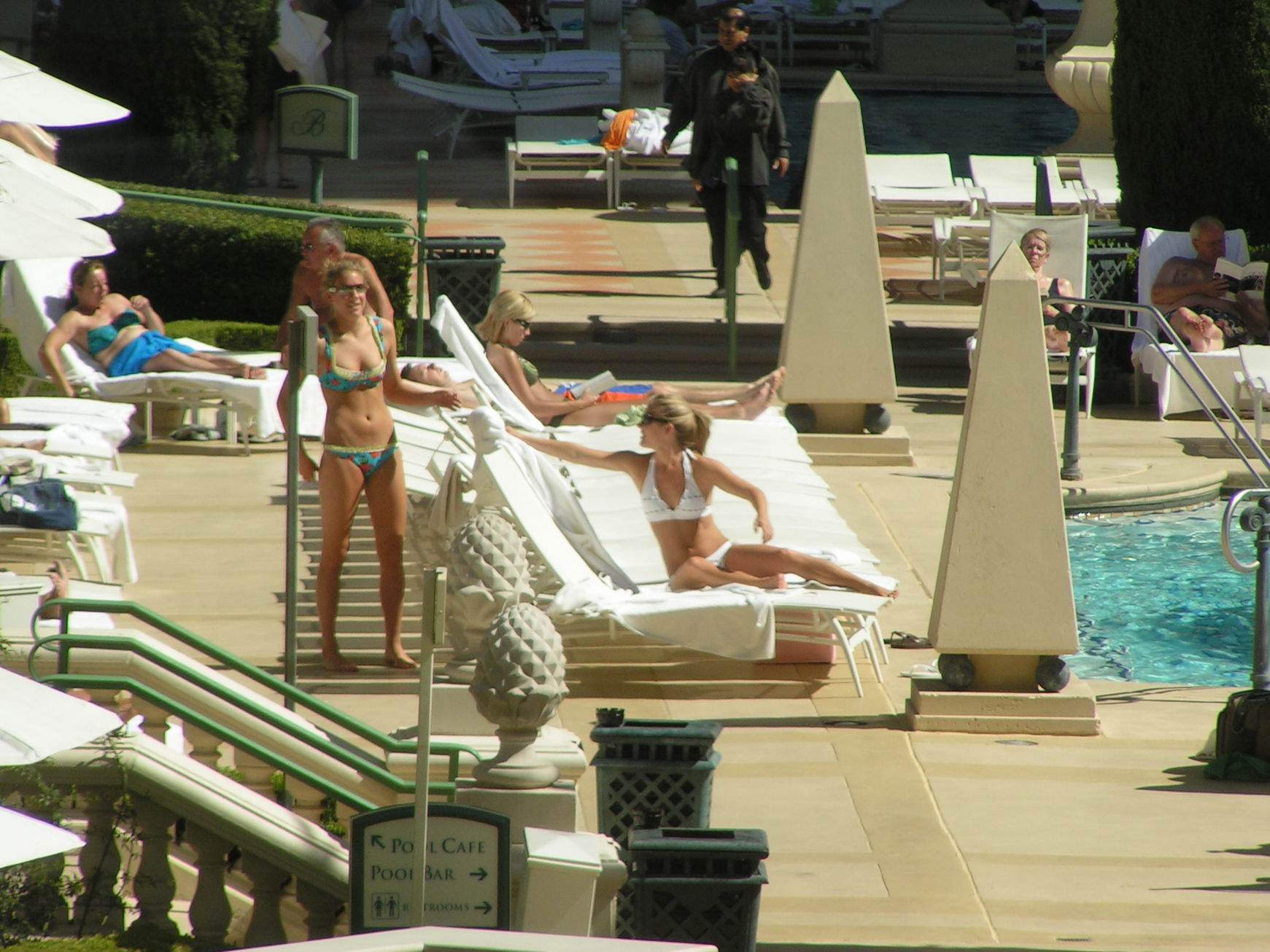 Vegas Sisters Pool Guy atomicfrog bikini voyeur candid nonude booty ass butts suntanning spy legs flipflops soles toes