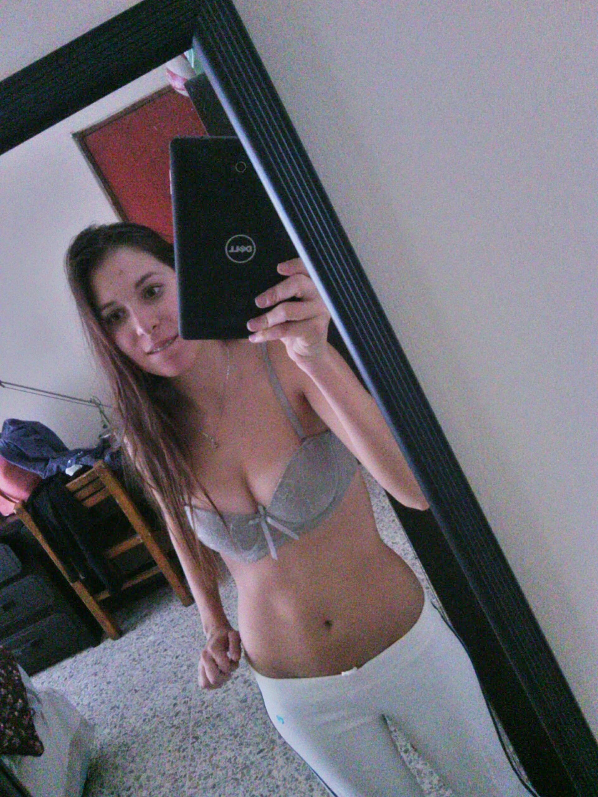 selfie selfshot mirror brunette amateur booty teen tanlines tits boobs ass perky bra panties hot babe spread